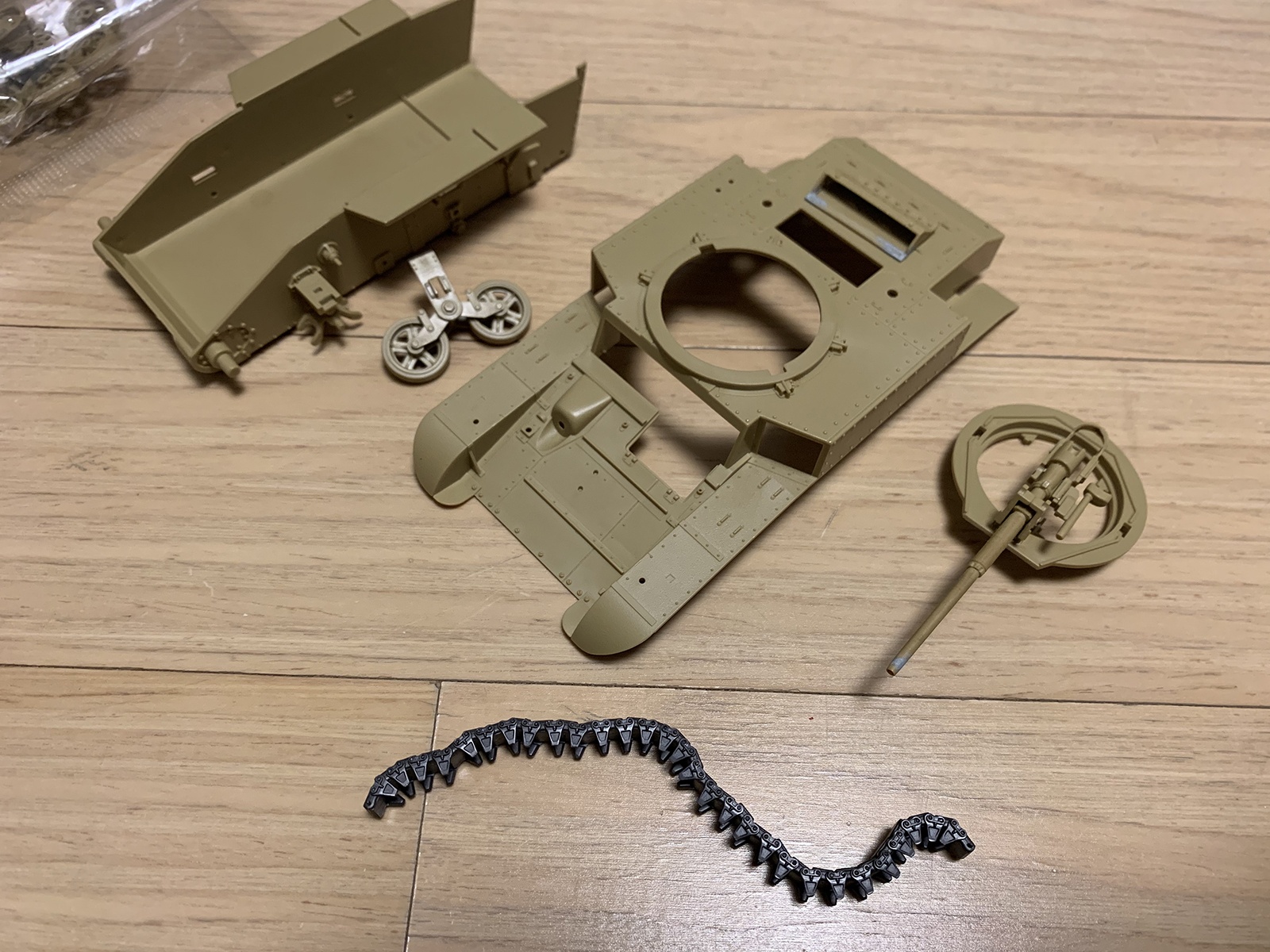 연결식 궤도 또한 일부 조립하여 부분 접착방식으로 반 가동식 처리했습니다.