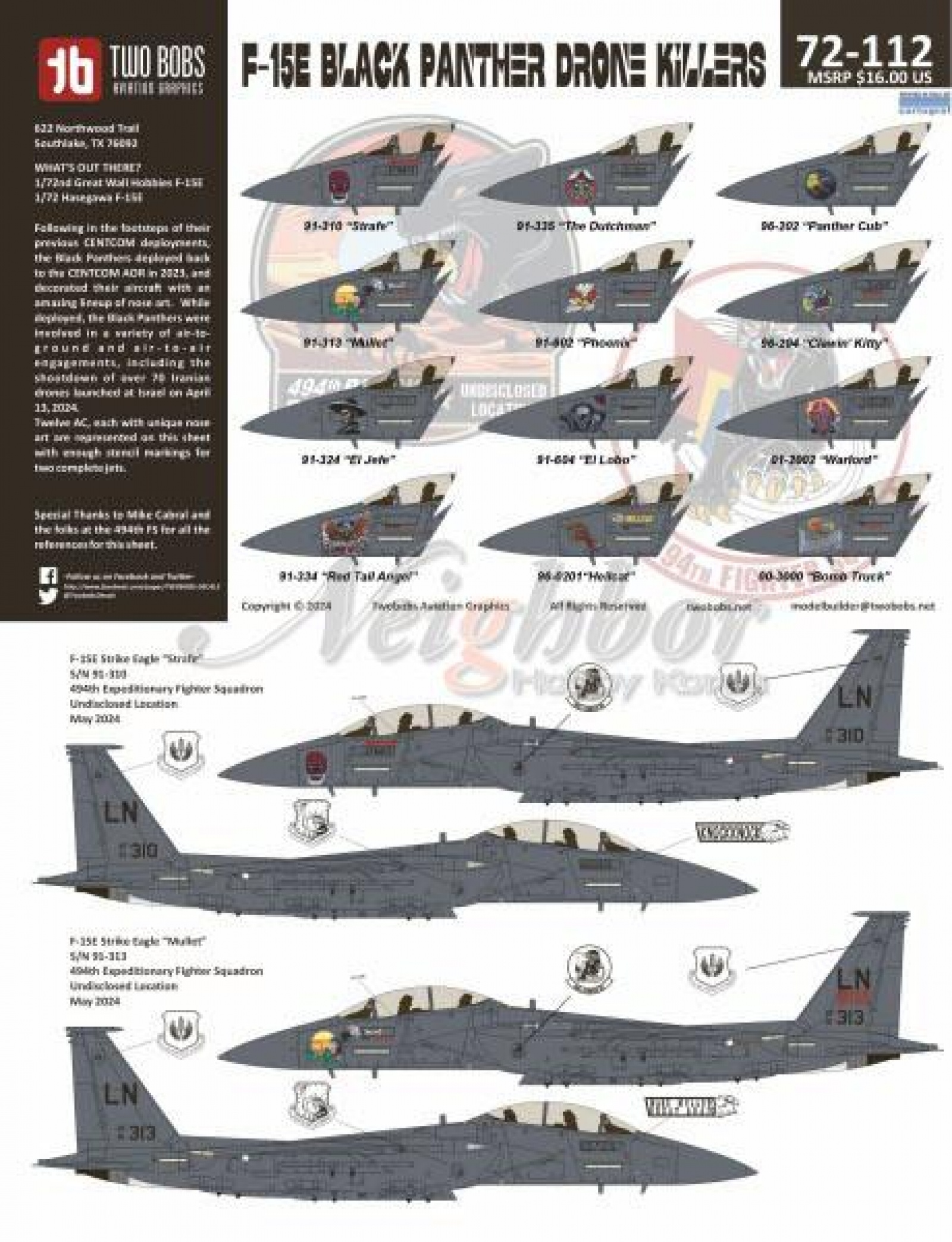 * [TB72112] 1/72 F-15E Black Panther Drone Killers