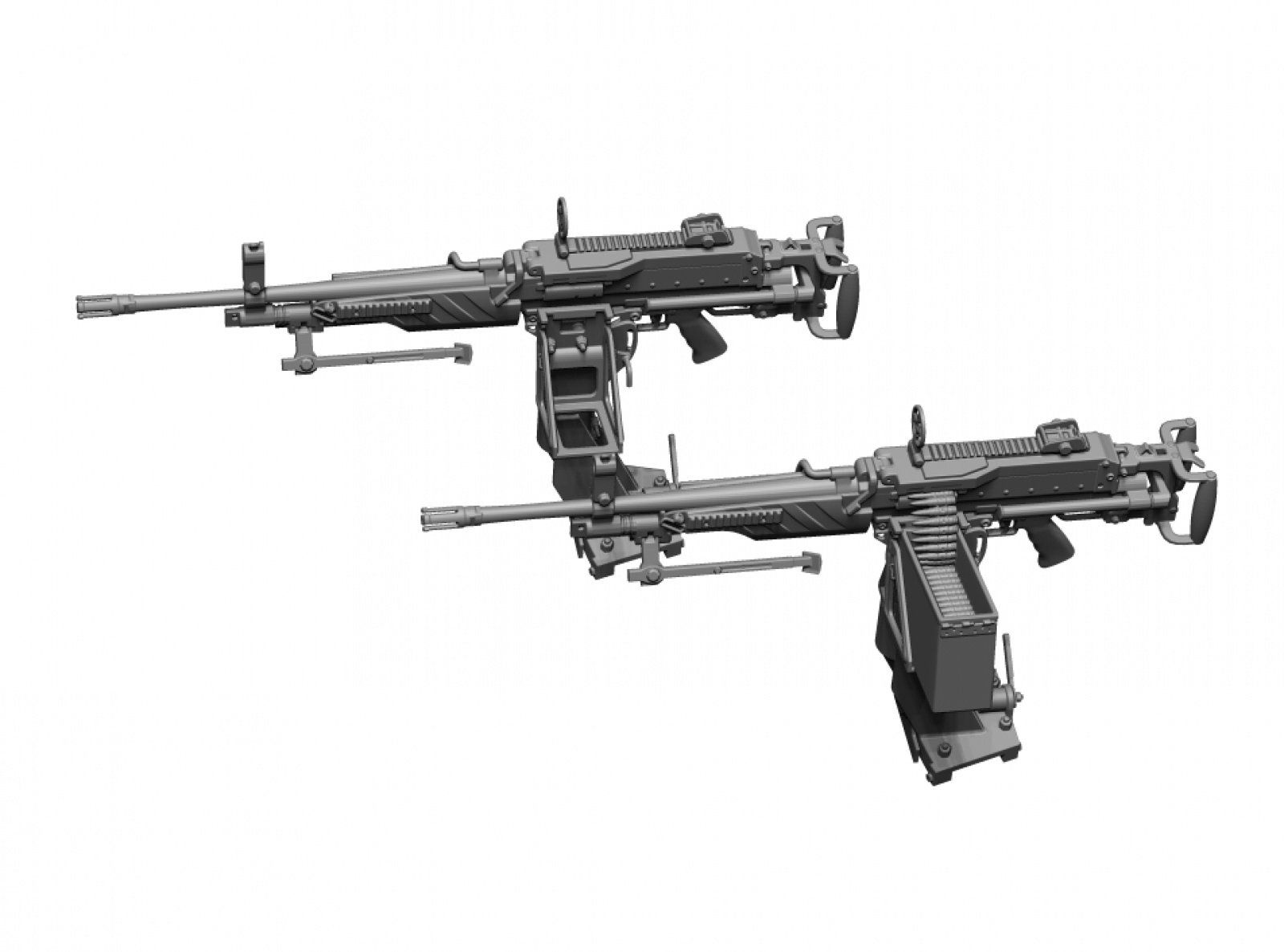 정교함: 3D 프린팅 기술은 미세한 디테일과 복잡한 형상을 매우 정밀하게 구현할 수 있어, 기관총 본체, 거치대, 탄약통, 탄띠 등의 세부적인 특징을 선명하게 재현 하였습니다.