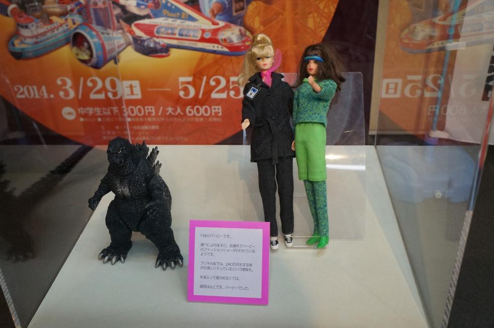 표 파는 곳 앞에 고지라와 바비인형이 있습니다.