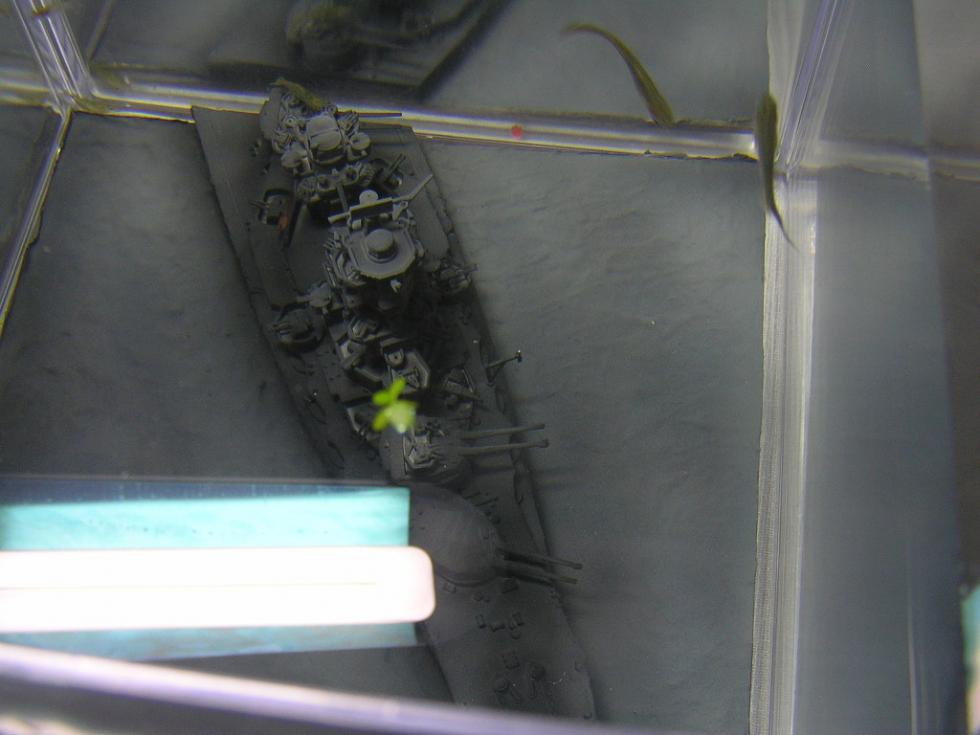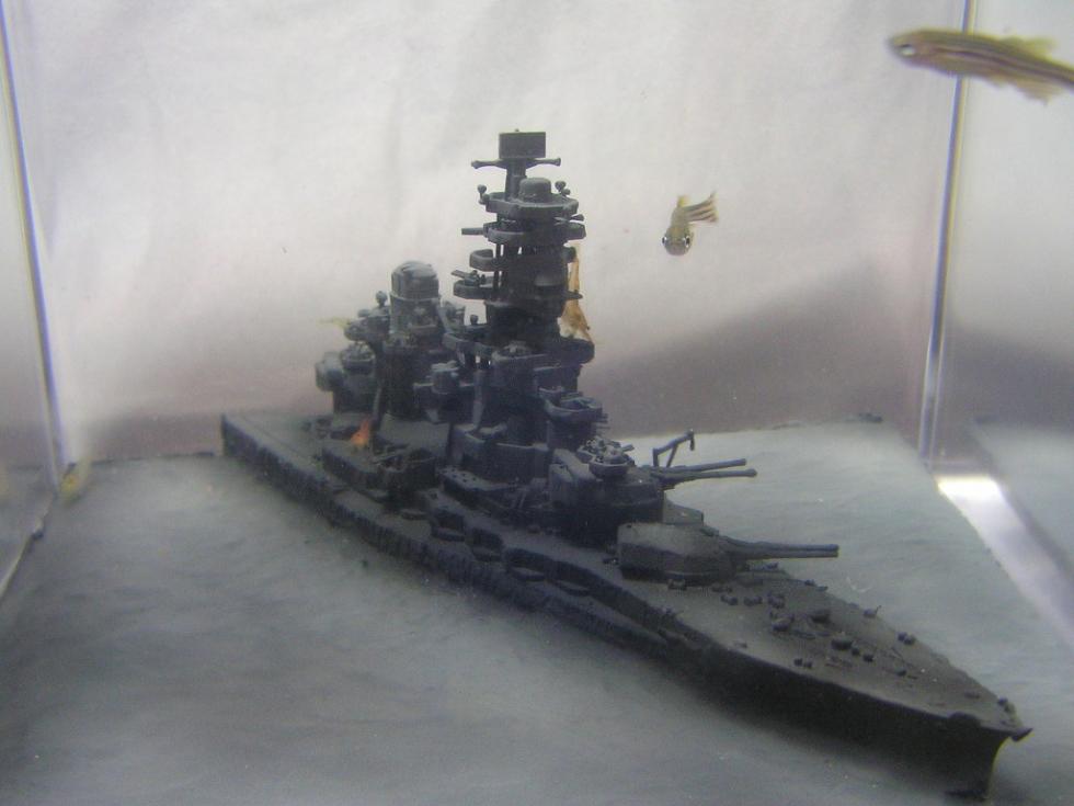 방구석에 굴러다니던 빈 어항과 1/700 전함 하나로 재활용 삼아 간단히 만들어 봤습니다.