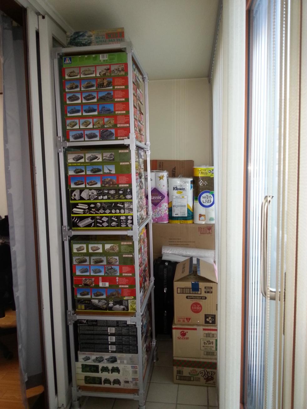 베란다에 장식장을 하나더 설치해서 보관하고 있습니다.