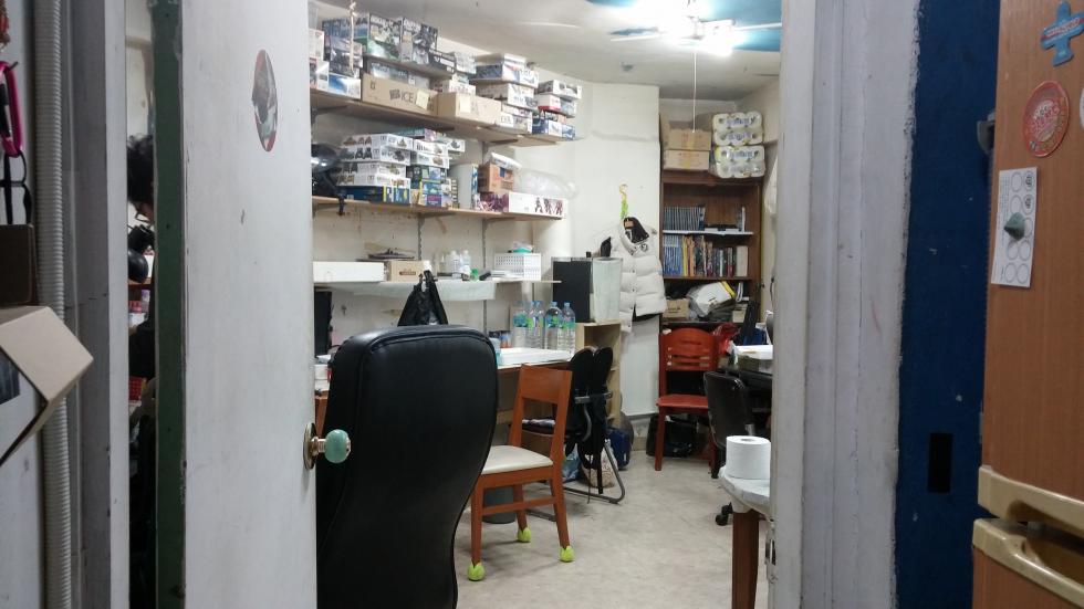 개인 책상 1개씩 있고 공용시설품은 스프레이부스2개(큰거, 작은거),냉장고,전자레인지,간이진열장,원형테이블,에어컨,전기난로,커피머신,여러가지공구 등