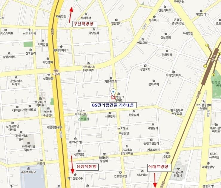 서울시 은평구 역촌동 23-1번지 (gs편의점건물 지하1층) 주변 역은 구산역,응암역 중간 사이입니다.