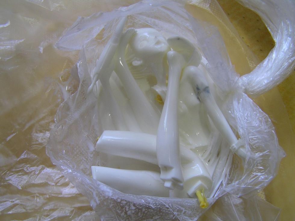 봉지 속에서 신너로 목욕중인 부품들 .