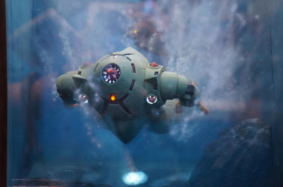 수중 항행중인 족크의 박스 디오라마. 투명 프라판을 겹쳐서 기포를 표현했습니다.