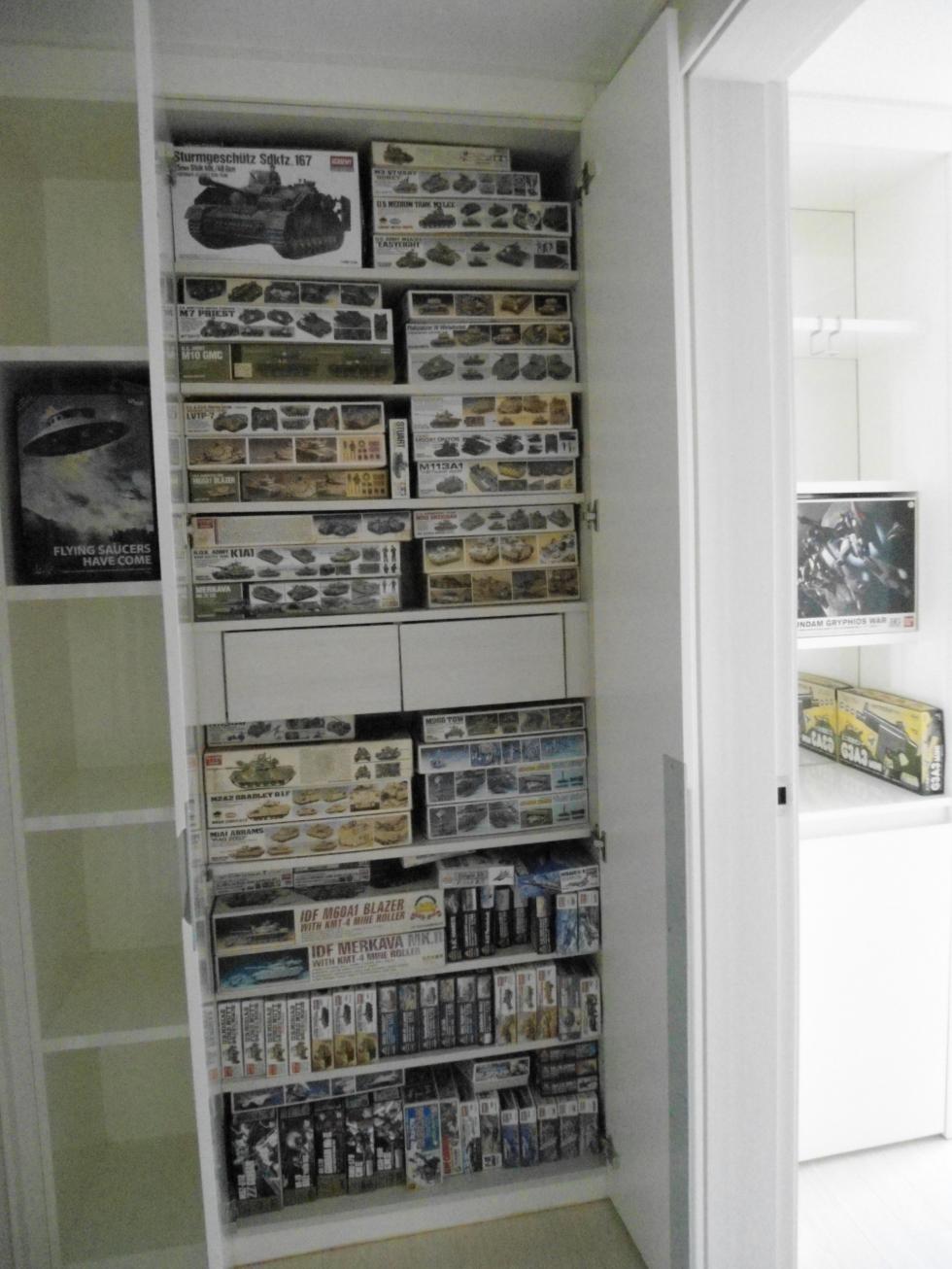 새 아파트라 26평인데도 수납공간은 제법 되더군요, 처음엔 김치냉장고 자리에 넣어볼까 했습니다만 아래에 깔릴 모형에 무리가 갈 것 같았습니다