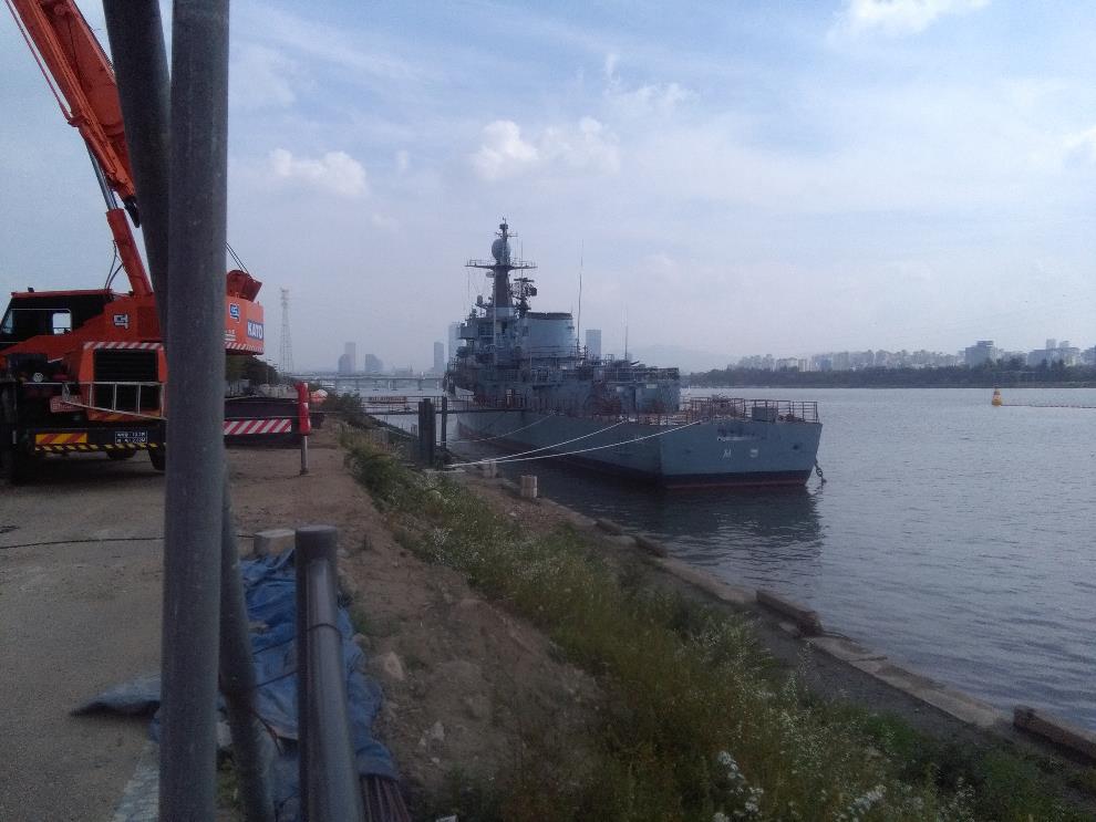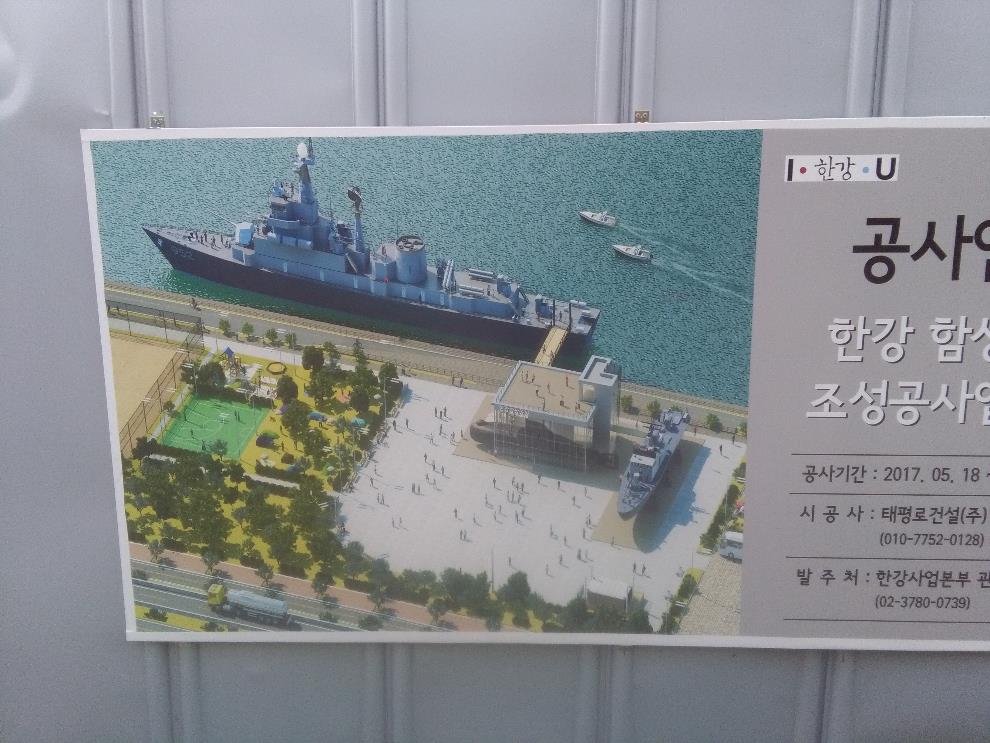 날씨도 아직 더운데 한강함상공원 공사가 한창입니다.