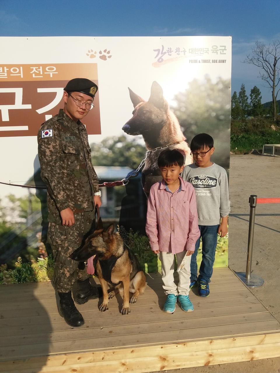훈련받은 개를 보면서 한편으론 놀라면서 훈련을 한 개나 군견병은 얼마나 힘들었을까 느껴지고 세퍼트 같은 개만 보다가 마약탐지견 같은 개를 보면서 다양함을 느꼈다.