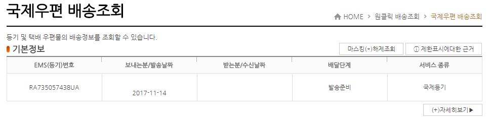 이건 우리나라 우체국이구요... 발송날짜가 11월 14일이면 보통 지금쯤 교환국에 도착해야하지않나요? 일단 한달정도까진 기다려보겠지만 그 이후부터는 많이 불안할것같습니다.. 대행업체를 쓰는게 아니라 직구는 처음이거든요