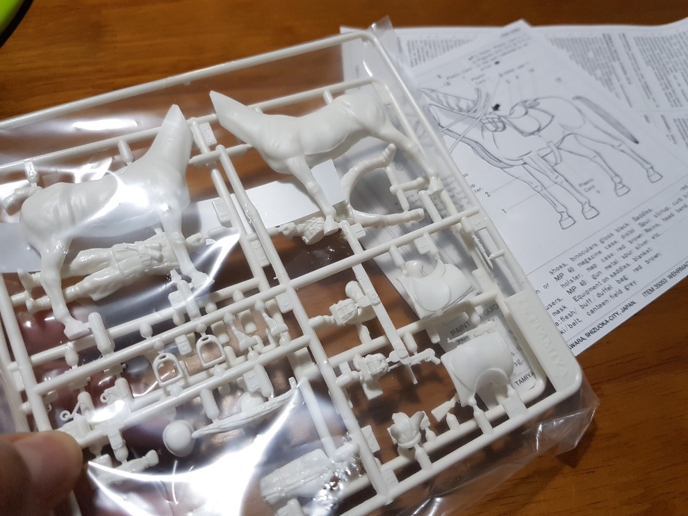 엇그제 모형점을 잠깐 들렸다가 이 물건을 봤습니다. 제가 어렸을 때 제일과학인지 카피판도 나왔던 타미야 승마보병입니다. 승마보병이라는 표현은 오류가 있을 수 있으나 어렸을 때 봤던 카피판 모형 상자에 승마보병으로 써 있었던 것 같아 그대로 표현해 봅니다.