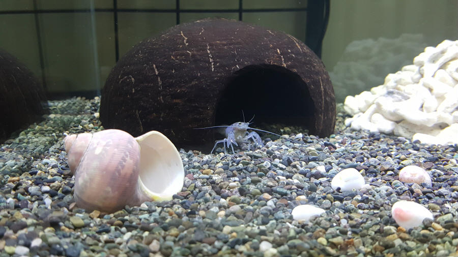 탈피 껍질 모습.. 가재를 키워본적 없는 분들은 이 경우 당황합니다 가재가 죽은줄 알고 보다보면 구석에 더 커진