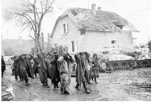 상황은 반대인데 이 사진은 독일 국경에서 미군이 독일군을 포로로 잡은 장면입니다. 수직형 현가장치 초기형에 포방패도 초기형이네요.