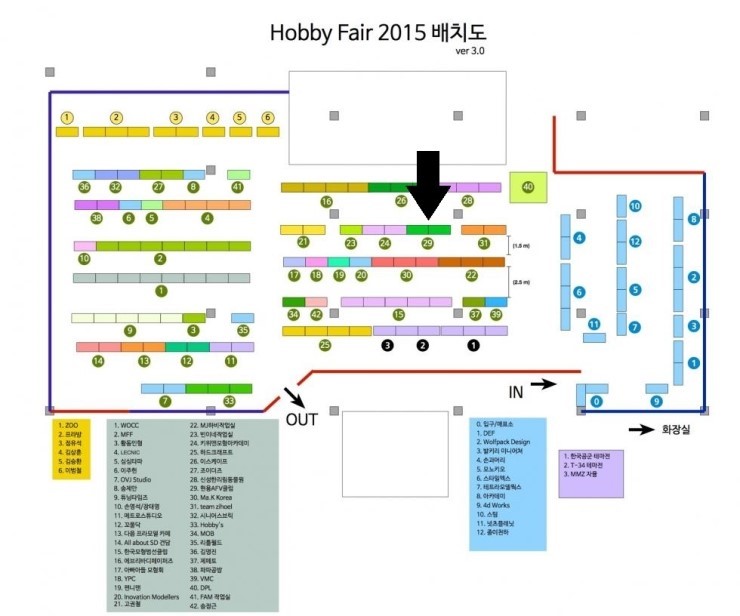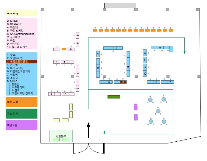 생각이 나서 제 카페게시물을 뒤져보니 1회 하비페어의 배치도가 보이네요. 지금의 규모와 비교하면 분명 시작은 미약하였으나, 지금은 명실상부한 국내최고최대의 전시회가 되었네요.