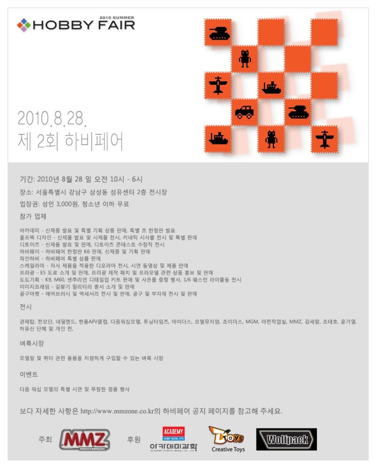 MMZone에서 2009년 12월 20일(일)에 양재동 aT센터 1전시장 B홀 ^^ 에서 1회 하비페어를 할 당시, 지금 운영하고 있는 카페인 [현용AFV모델링클럽]을 만들고 얼마 안되었던터라 떨리는 마음으로 참가했었습니다. 어느새 시간이 지나서 10회 하비페어가 되었고, 뒤돌아보니 한해도 빠지지 않고 꾸준히 참가할 수 있었던 것에 함께 참가하는 카페의 회원들에게도, 무엇보다도 MMZone의 김성종 운영자님께 진심으로 감사한 마음이 들었습니다.