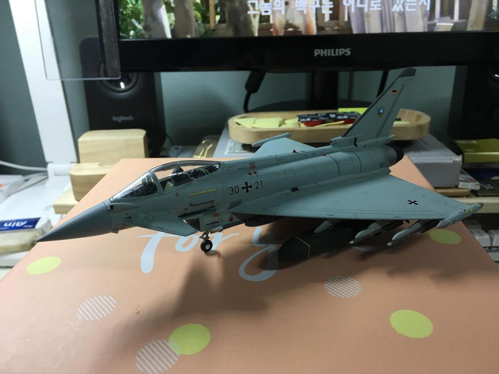 두번째 하세가와 유로파이터는 좀 힘들더군요. 하세가와 킷의 특징인지 캔 스프레이로 도색하고 나면 충분히 건조를 시켜도 도색이 쉽게 벗겨졌습니다. 그래서 샌드페이퍼로 표면을 갈아내거나 신나로 약하게 표면을 손상시키는 방법으로 처리를 해 준 후에 색을 올리니 좀 괜찮아지긴 하더군요. 잘 살펴보니 하세가와 킷은 다른 킷에 비해 표면이 좀 단단하고 글로시해서 그런 것이 아닌가 싶은데... 하세가와 킷이 원래 좀 그런가 궁금하네요.