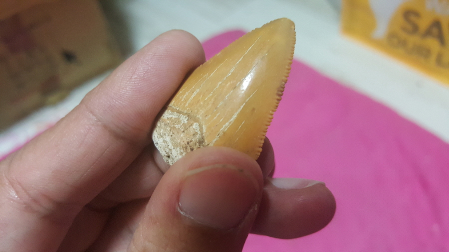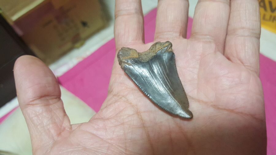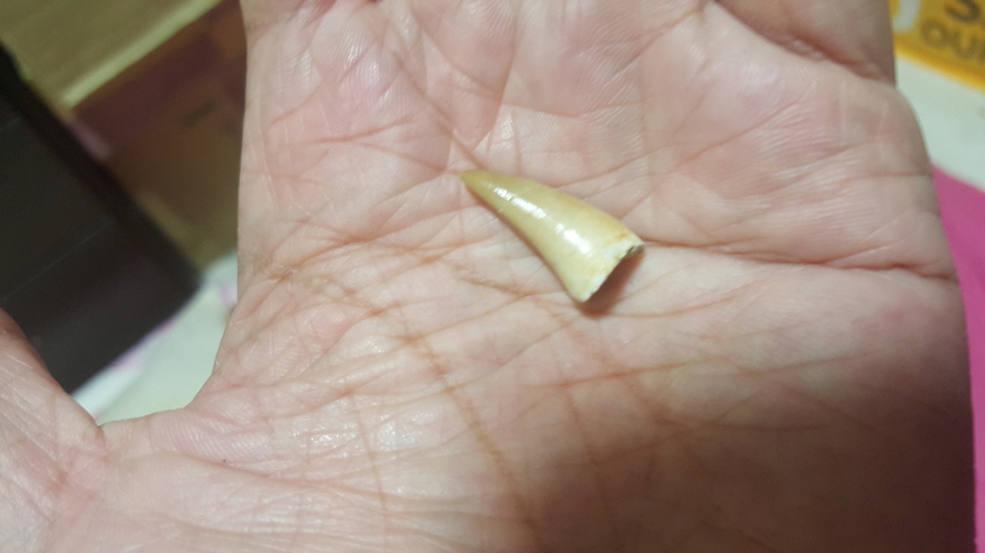 * 이 놈은 메갈로돈이 아닌 모사사우루스 베이비 이빨 진품, 무려 7천만년전 애기 이빨이네요..