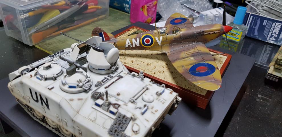 20년전 구입한 타미야제 1/48 스핏파이어와 아카데미제 케이200 유엔군 버젼입니다.