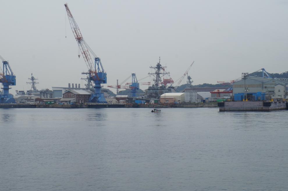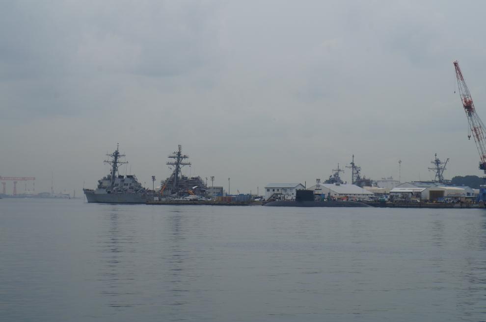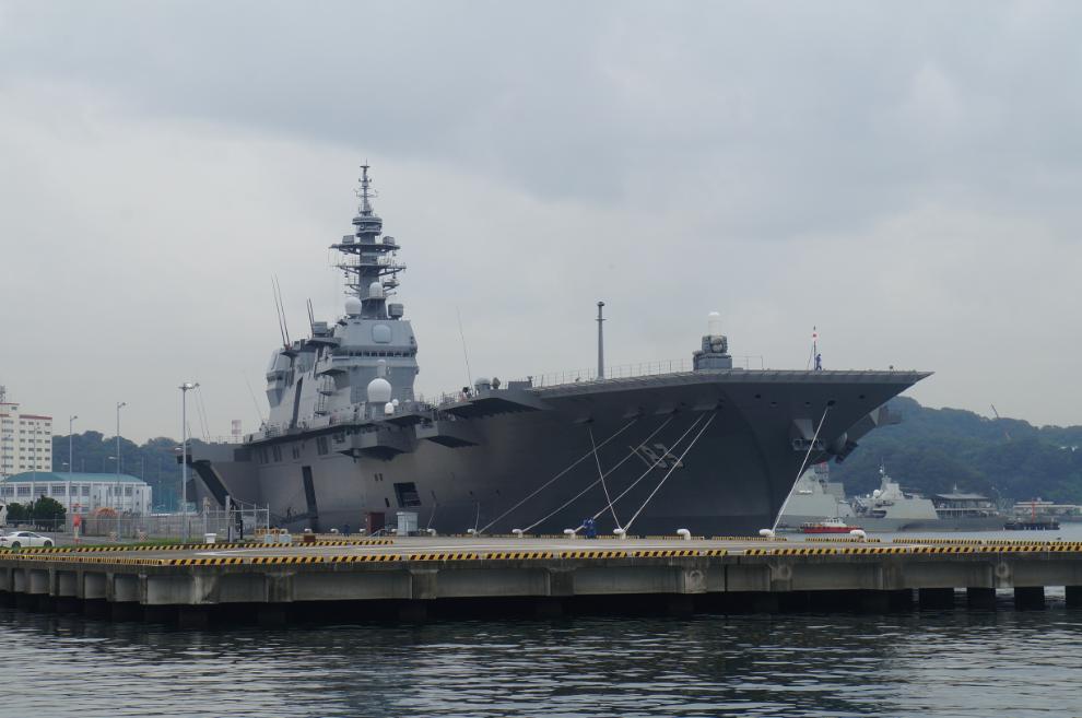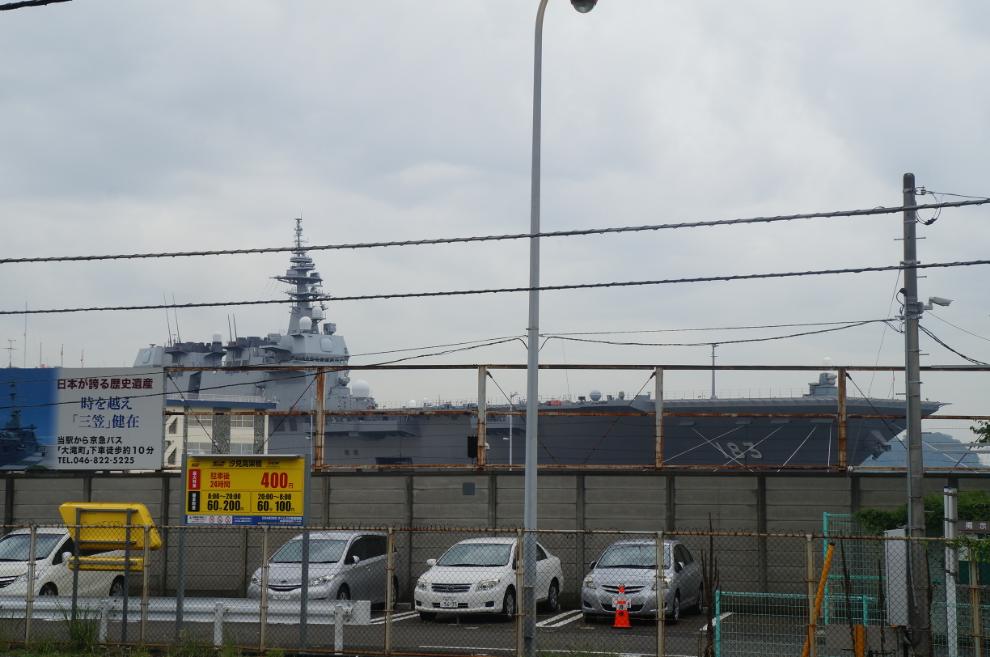 요코스카역 플랫폼에 내리자마자 이 녀석이 보이네요. 자위대의 가장 큰 호위함, DDG 183 이즈모입니다.