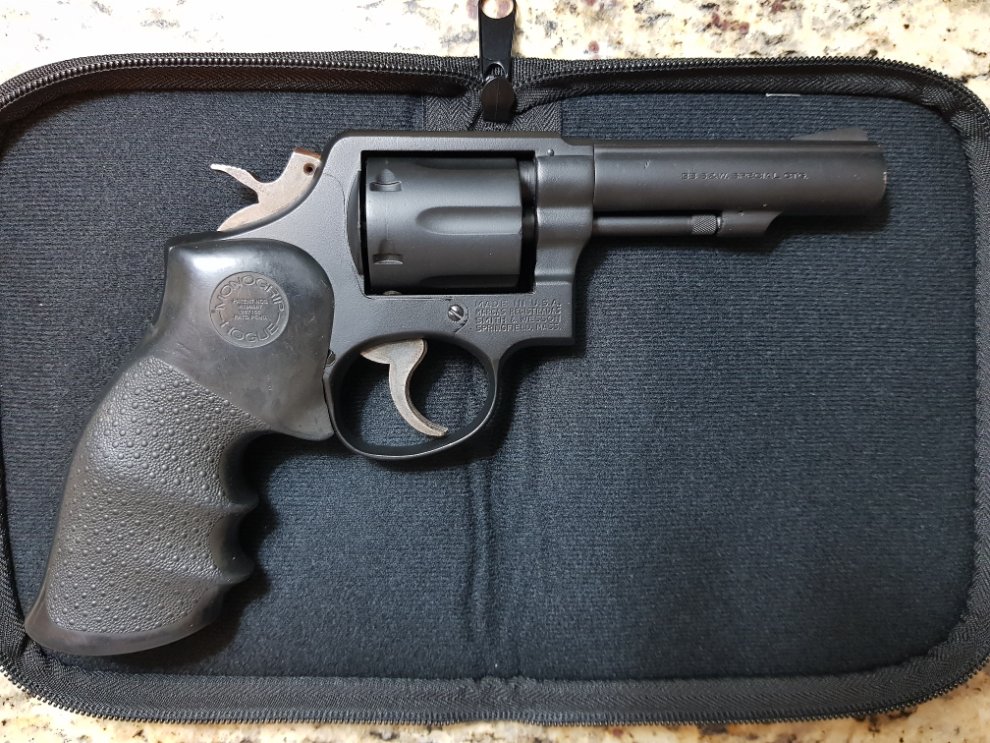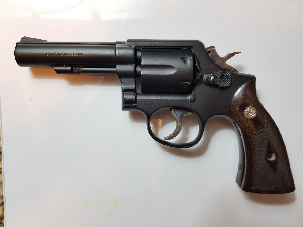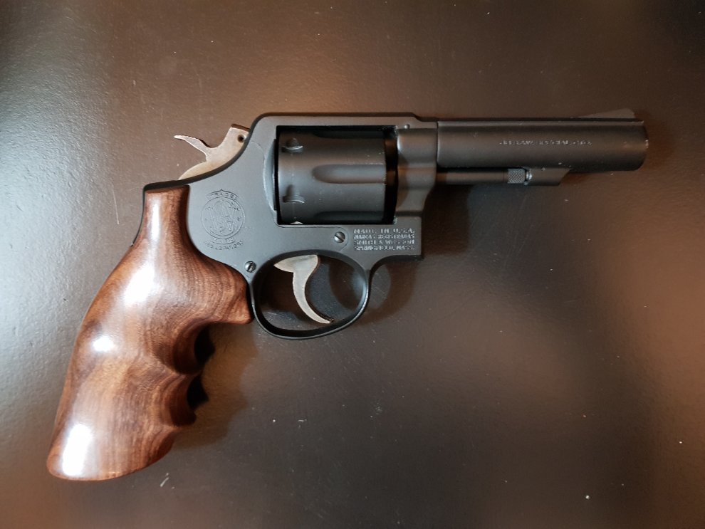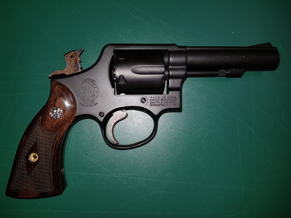 이번에 소개해드릴 총은 Smith & Wesson에서 만든 K-frame 리볼버인 10-6입니다. $447주고 중고로 구입했습니다. 일련번호를 검색해보니 76년후반에서 77년초에 생산된 권총입니다. 44년된 권총치고는 상태는 아주 괜찮은데 전주인 누군가가 바꾼 별매그립 상태가 영 아니었습니다.