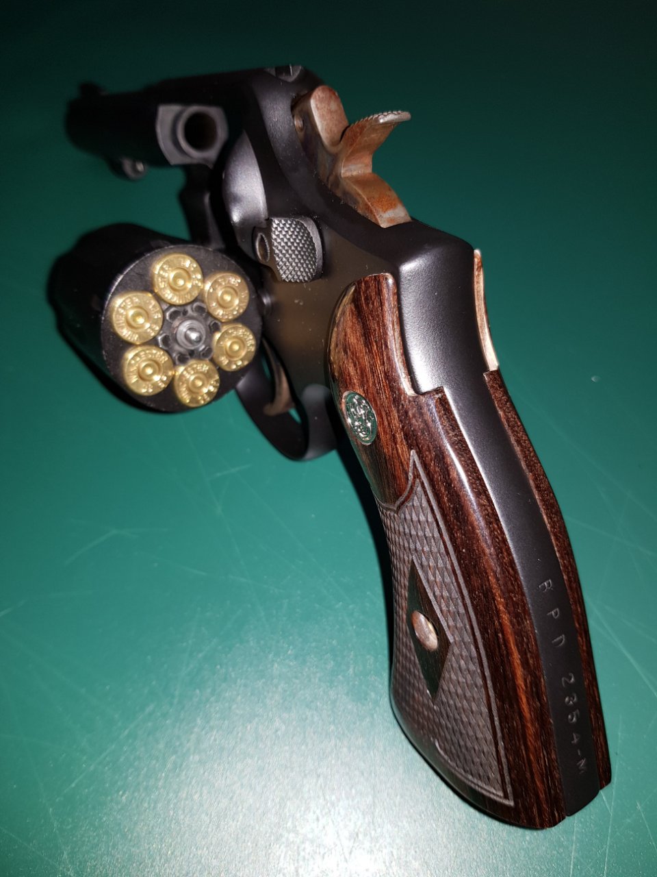 이 권총은 38 special 6발을 장전합니다. 38 special은 보통 38구경이라고 하죠. 한국경찰이 이 구경의 리볼버를 쓰는걸로 알고 있습니다.