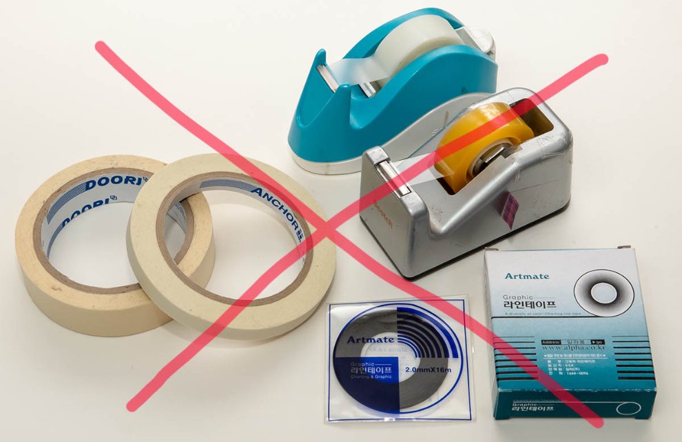 (지금까지 써온 모형을 망친 마스킹 테이프들)