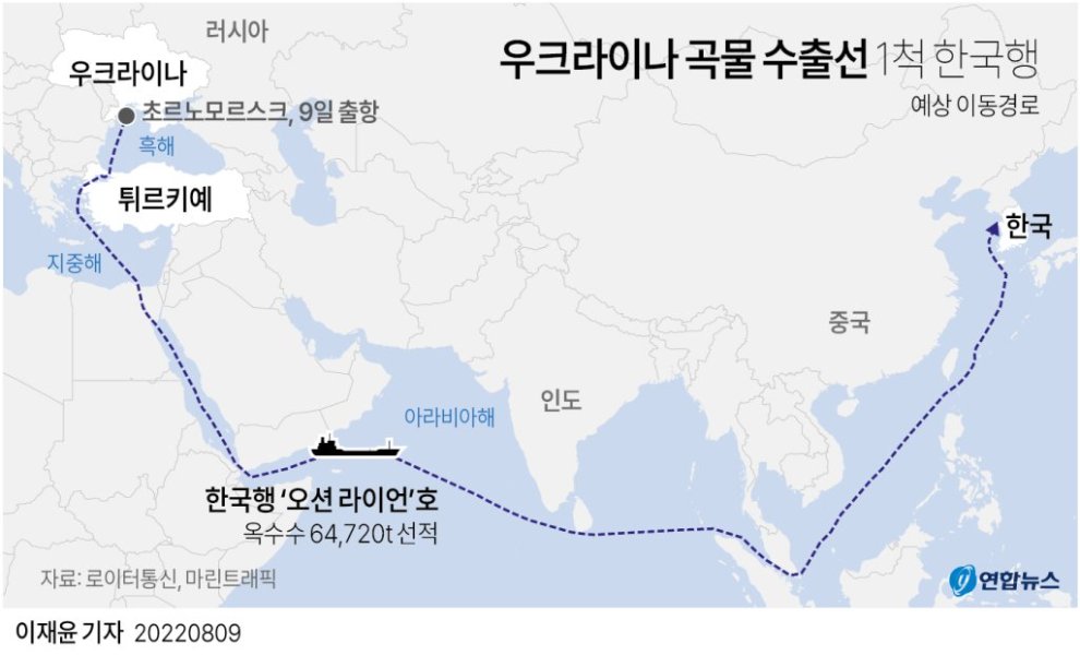 우크라이나에서 화물선이 오네요.