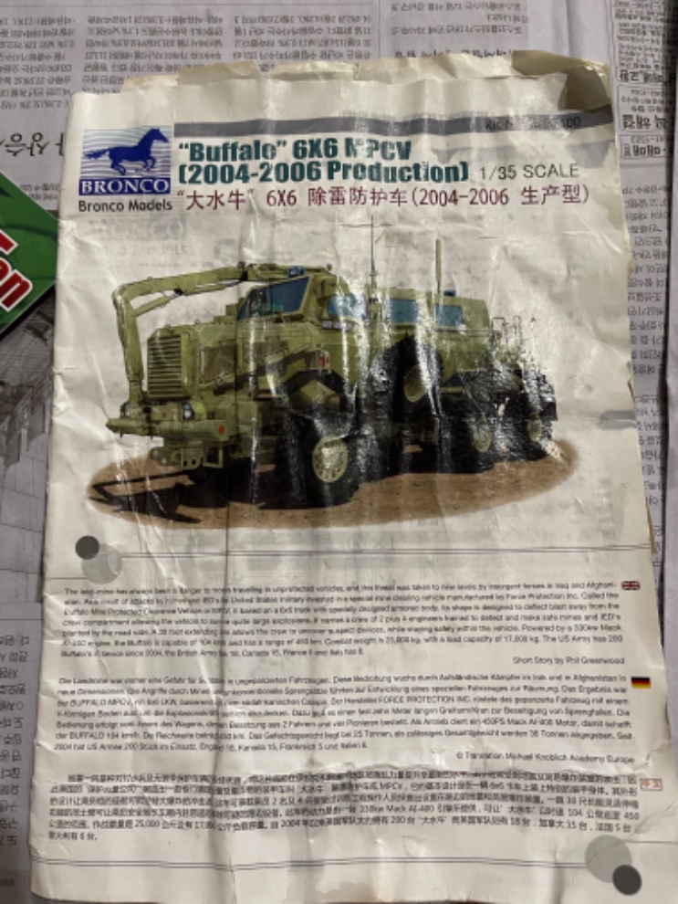 그 와중에 브롱코모델 버팔로 MPCV 키트 넘버 CB 35100 제품과 그레이트월 하비 노스롭 P61A 블랙 위도우 아이템넘버 L4802 제품등 2개의 설명서가 첨부된 사진과 같이 아예 젖은 채로 달라붙어 버렸습니다
