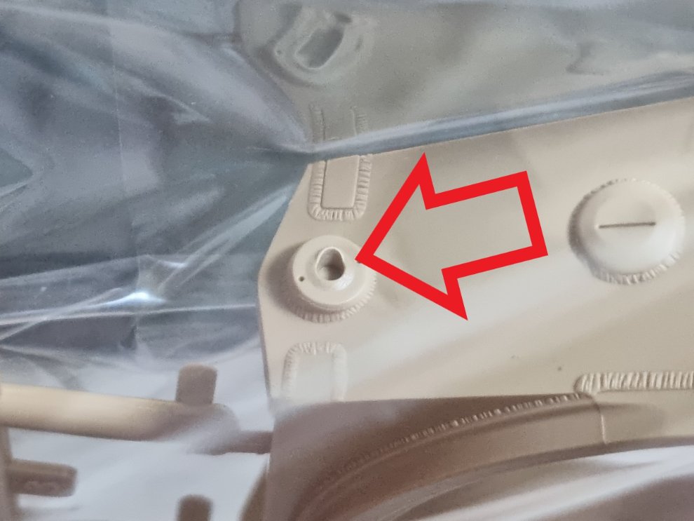 라이필드의 제품번호 5001U 티거 1 초기형을 구입했는데 포탑 좌측에 제법 눈에 띄는 성형 불량이 있어서 놀랐습니다. 티거 전차야 워낙 유명한 물건이라 설명이 필요 없겠지만 화살표로 표시한 부분은 정확하게 원형으로 구멍이 나 있어야 하죠. 큼지막한 타원형으로 구멍이 나 있어서 상자를 열어보고 당황했습니다.