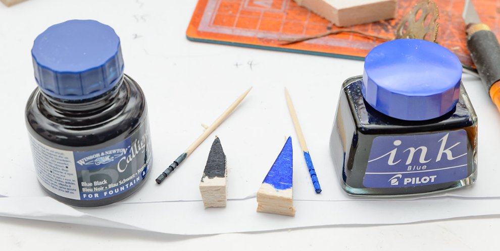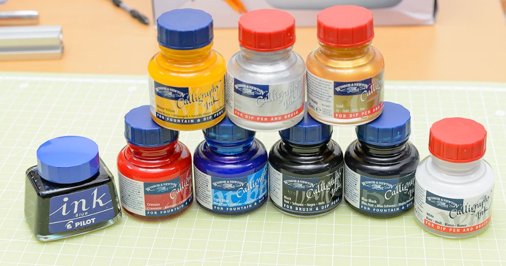 딥펜용 잉크 (제도용 잉크)는 피그먼트=안료라서 색소가 완전히 녹아있지 않고 시간이 지나면 밑으로 가라앉으므로 흔들어줘야 합니다. 당연히 만년필 같은 것에 쓰면 잘 막히므로, 딥펜같은 옛날 펜이나 붓으로 그리는 용도입니다. 만년필용 잉크와 달리 내수성이 없으므로 물방울이 떨어지면 다시 녹으므로 그린 후에는 주의해야 합니다. 대신 안료 도료이므로 내구성은 매우 뛰어나, 몇년이 지나도 햇빛에 탈색하지 않습니다. Winsor & Newton 에서는 Calligraphy ink 이름으로 18가지 색상을 판매하고 있습니다.