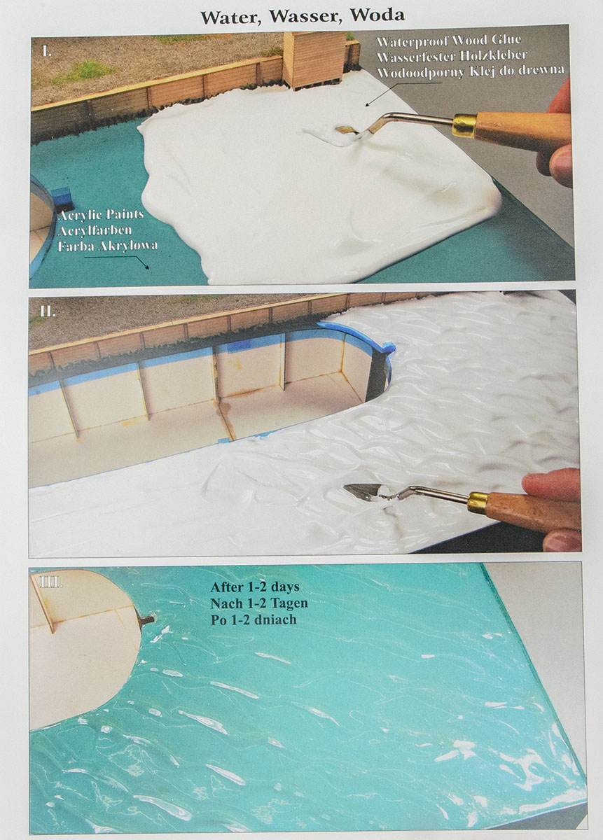 2. 목공용 본드 (주로 PVA 계열) 를 꾸덕하게 깔은 다음 미술칼이나 붓으로 물결무늬를 흉내냅니다. 목공용 본드는 마르면 반투명한 하얀색이 됩니다.