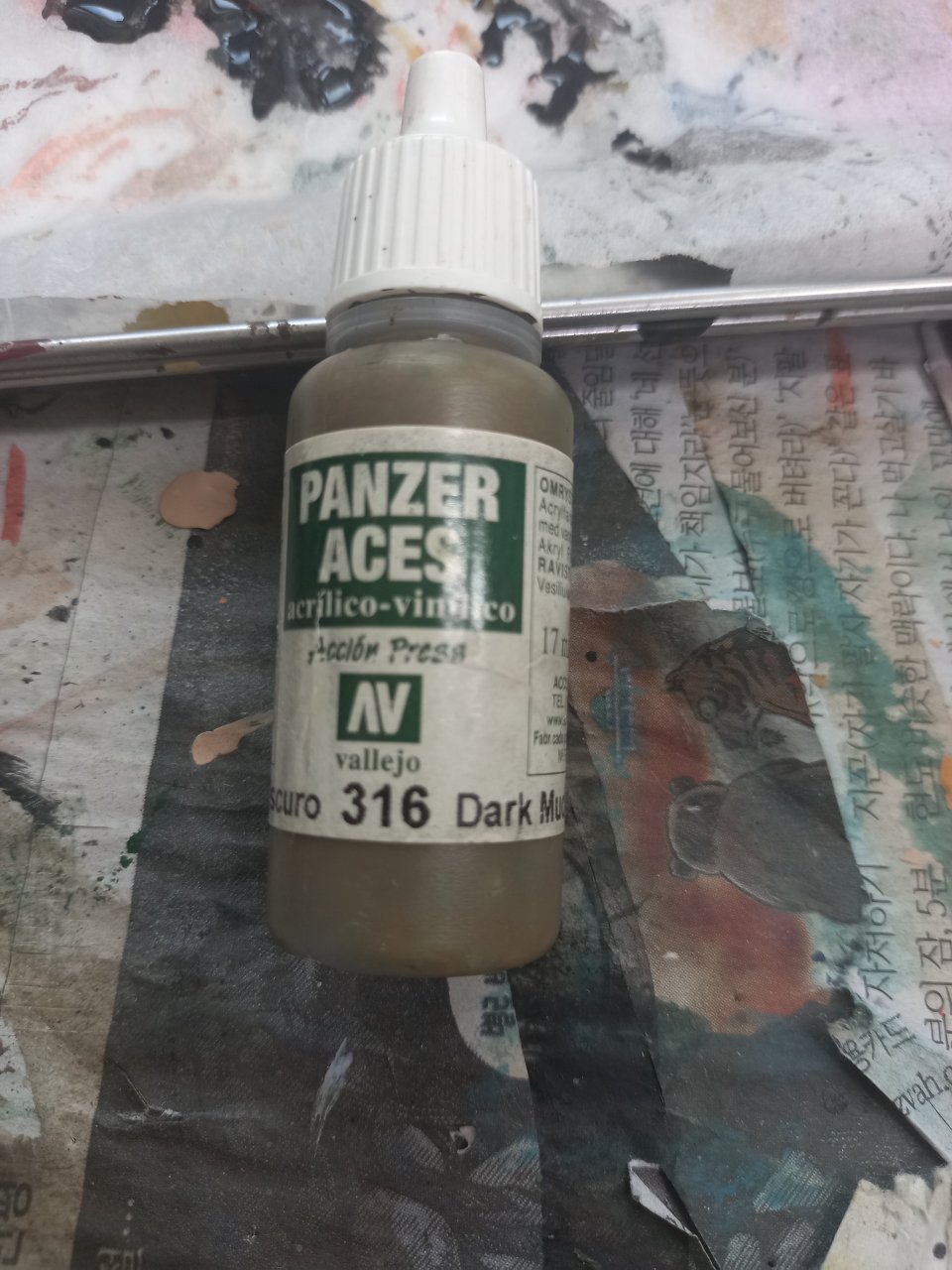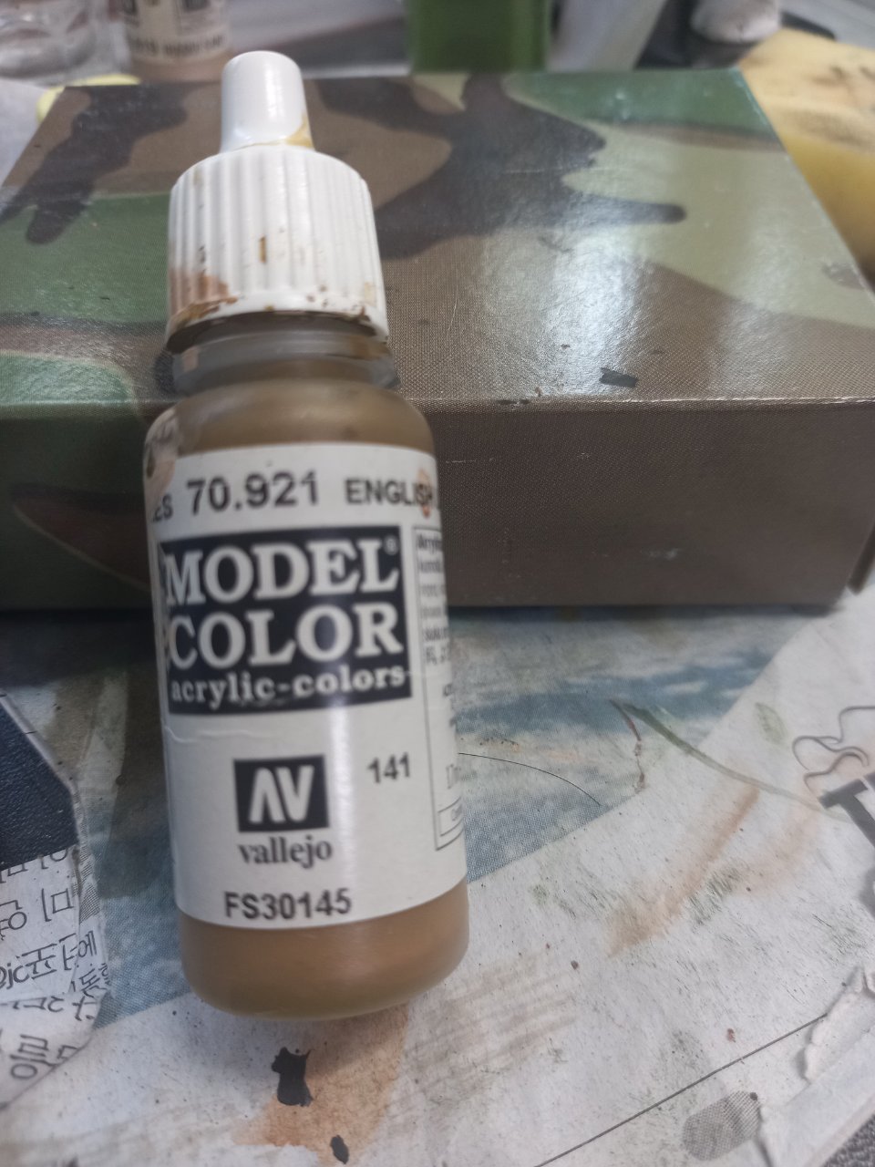 낡은 헛간에 달린 문짝이란 설정이라 고운 살색에가까운 나무 속살이 먼지와 산소에 닿아서 변색되면 나타는 색깔이 영국군 군복색과 비슷하다는 생각이 들어서 다크머드와 잉글리쉬 유니폼으로 어두운 부분을 칠하고 밝은 곳은 발레조 오팔(원래 이름은 베이직 스킨톤)이나 발레조 라이트스킨 색으로 하이라이트를 넣습니다