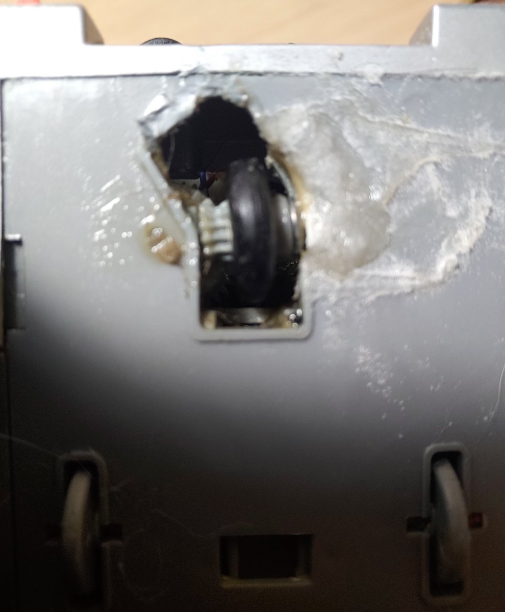 이에 바퀴옆에 은색링이 보이죠 이것은 스프링을 잘라붙여 바퀴가 안쪽으로 밀착되어 바깥쪽으로 빠지지않게 했고바퀴가 쳐지지않게 밀착을 위해 플라판으로 약간의 공간을두고 길모양으로 플라판을 오려준뒤 글루건과 강력접착제 식소다로 경화시켜 붙였습니다.