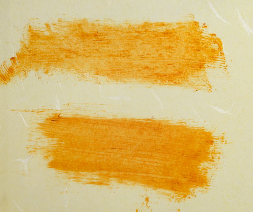 임파스토 (위쪽) 은 살짝 묽어지긴 했어도 치간 칫솔로 밭고랑을 판 듯한 자국이 어느정도 선명히 남아있습니다. 또한 유화 물감이 잘 안 퍼져서 배경이 고르지 않고 얼룩덜룩한데, 이것도 나무 나이테 표현에선 오히려 이득입니다.