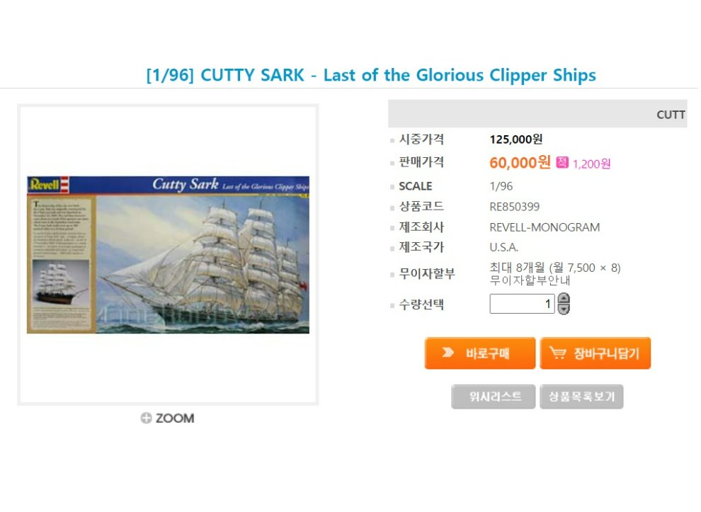레벨 1/96 커티샥 대형 범선이고 나름 좋은 제품이라고 생각은 되었지만