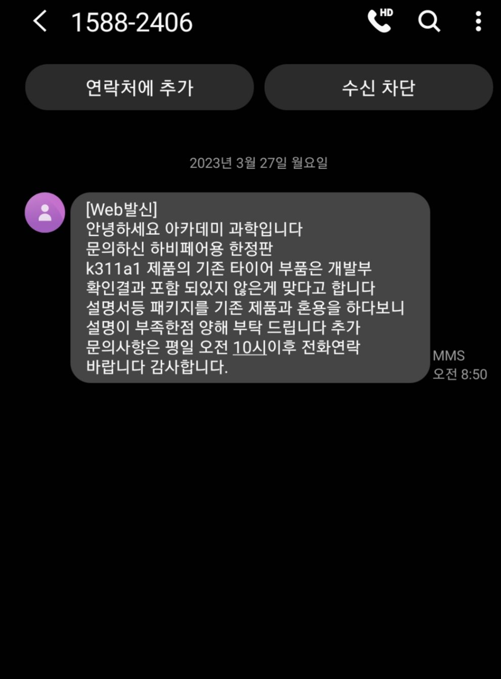하비페어 K311 A/S 신청에 대한 답변이 날아왔습니다.