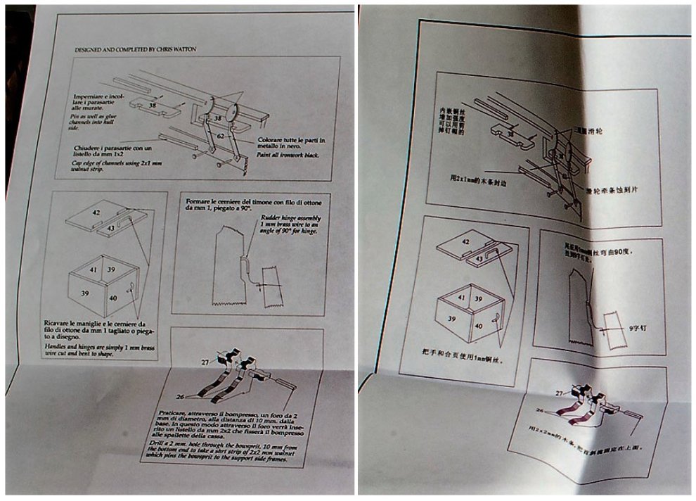 부품 번호 순서까지 동일합니다. 차이점은 중국어로 번역한 거랑 원래 개발자 Chris Watton 의 이름이 삭제된 겁니다. 이렇게 목범선은 레이저컷과 도면이 전부인 심플한 키트라서 중국의 해적판 키트의 범람에 크게 당하고 있습니다.