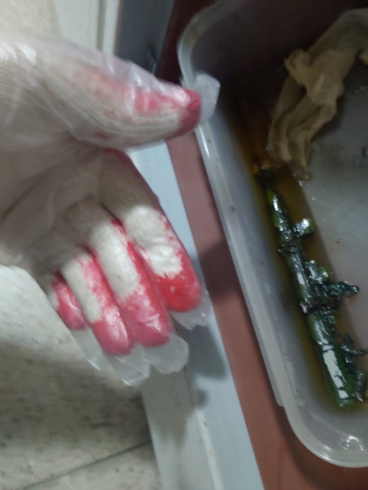 사실 이걸로도 모자랍니다 고무 장갑을 끼고 그위에 비닐장갑을 끼십시오 비닐 장갑만을 끼면 100% 피부가 벗겨지는 휴유증을 겪게 됩니다.