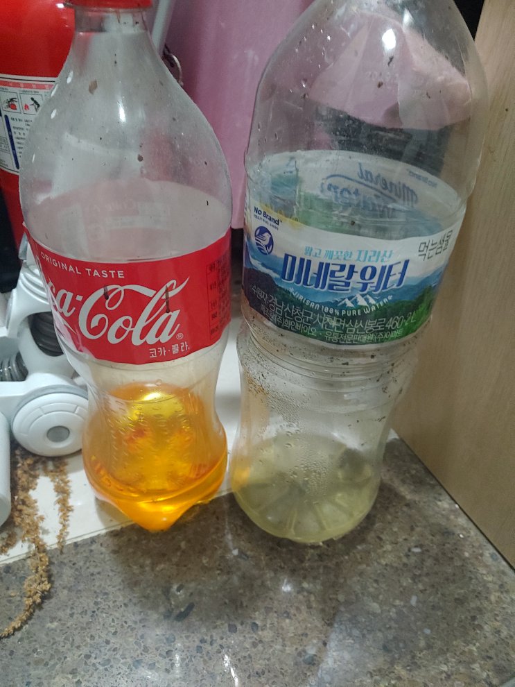 콜라병에 담긴게 솔벤트이고 만일 먹으면 제초제를 먹었다고 생각하십시오...옆에는 타미야 리무버로 이것또한 만만치 않은 괴물독성의 솔벤트 계열이라 추측됩니다 물로 엄청희석해서 사용해도 엄청난 발암물질입니다.