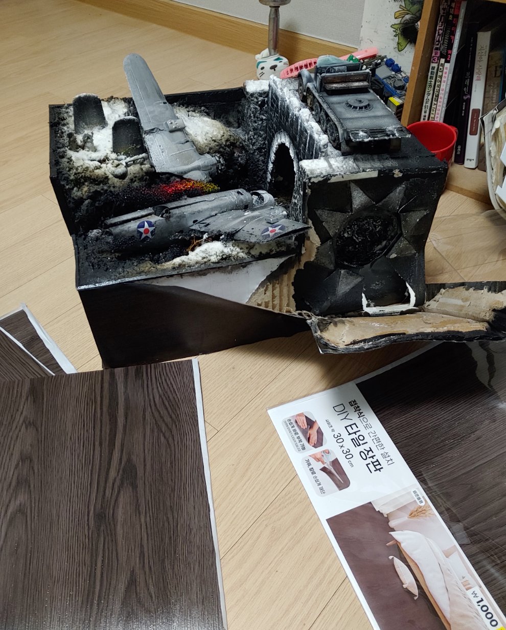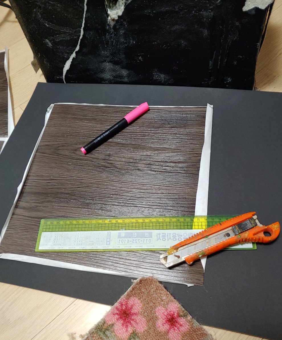 1.우는 시트지대신 타일장판 붙이기 시트지가 울어서 보기 흉하고 고치기도 힘들어 아예 다이소 두꺼운 타일 장판을 이용 했습니다.