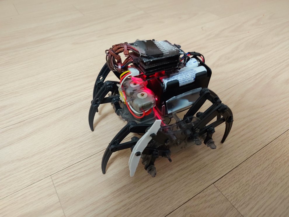 조종기 없는것을 중고로 만원에 구입하였는데 단종된버젼이라 보드에 맞는 조종기가 없음 고로 보드교체<2.4기가로> 다리분실 수리 건전지 박스 본래 있는것을 빼내고 개조된 것으로 교체 총6v사용 4채널인데 거미에게는 딱히 2채널이상 필요친 않는데 다른 부분을 구동할게 있을까?