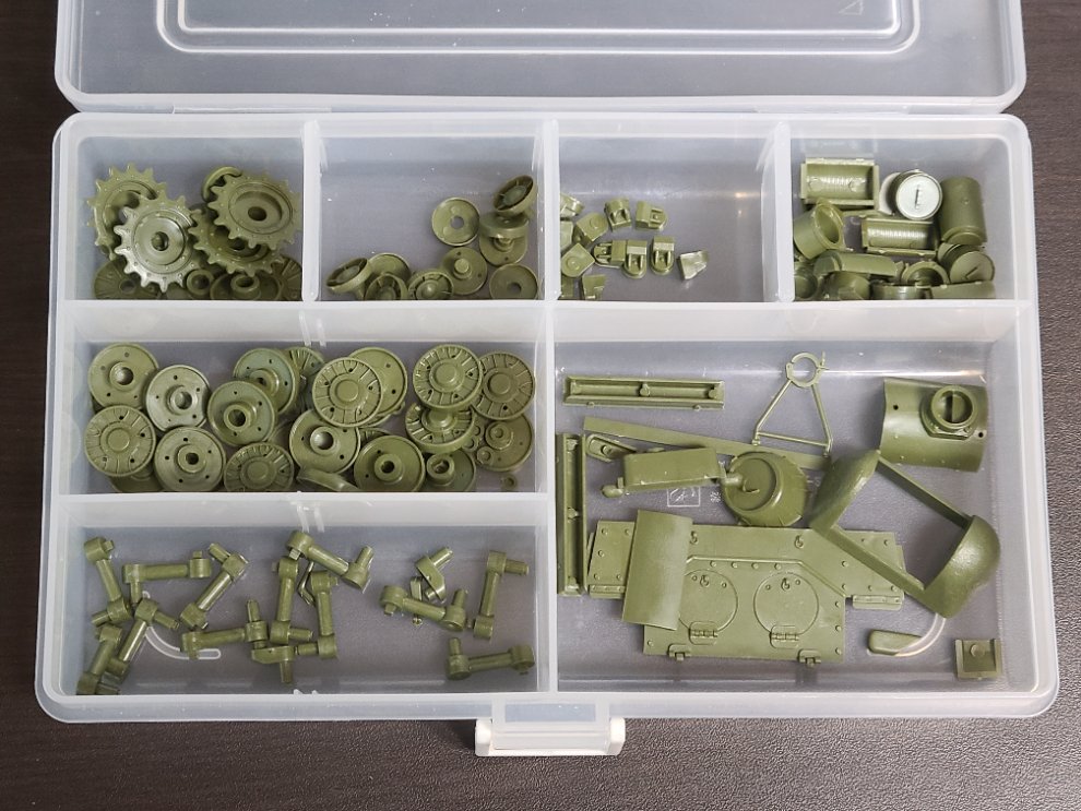 정확한 명칭은 모르겠는데 1~2천원이었고 이 사이즈는 AFV나 Auto류 조립할때 적당합니다. Aero이면 더 큰게 필요할듯요. 보통 설명서 1~2페이지정도 부품을 한번에 다 분리해 통에 보관해서 번거로운 런너수 빨리 줄이는데도 용이합니다. 맨 윗칸은 좀 헷갈리게 비슷한 부품을 구분하는데도 좋습니다. (예: 왼쪽부터 오른쪽 방향으로 부품번호 숫자 작은것부터 큰것 구분으로...)