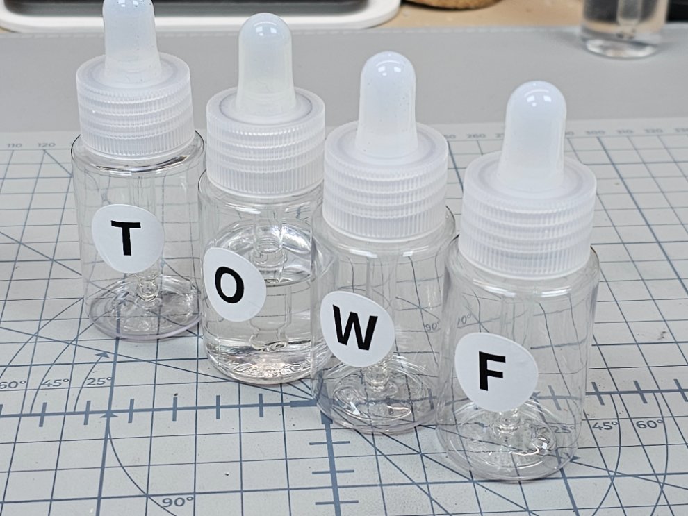 아크릴, 유화용 용제를 이렇게 덜어서 쓰기위한 용기입니다. 작업을 하다보면 용제를 조금씩 넣고 희석할 일이 많죠. 그때마다 스포이드등으로 덜어 쓰는건 귀찮아서 이렇게 준비해 놓습니다.