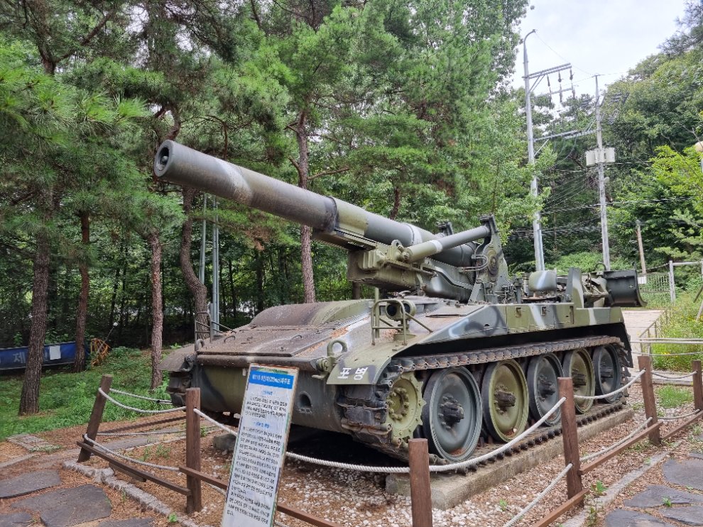 안성휴게소 상행선 흡연장소 옆에 전시된 m110입니다.