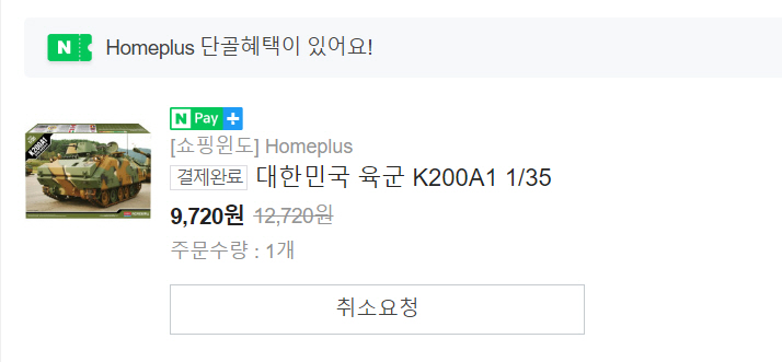 두번째는 아카데미 키트는 똑같은 물건 어디서 사면 26000원이고 어디서 사면 9720원.. 각자도생 인가봅니다