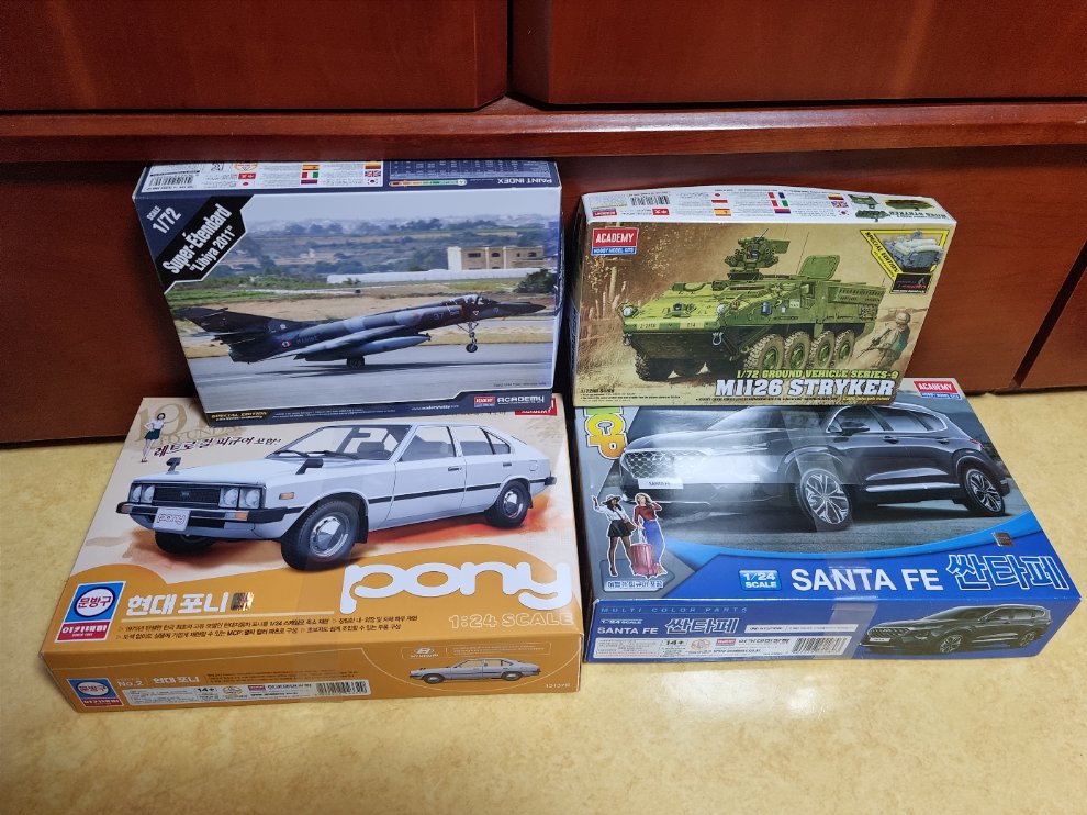 일단 조금 희귀하거나 한정판인 키트를 선물로 드려봤는데요. 쉬페르 에탕다르, 포니 이마트 한정판, 1/72 스트라이커 한정판, 그리고 싼타페 롯데마트(토이저러스) 한정판으로 선물을 드렸습니다.