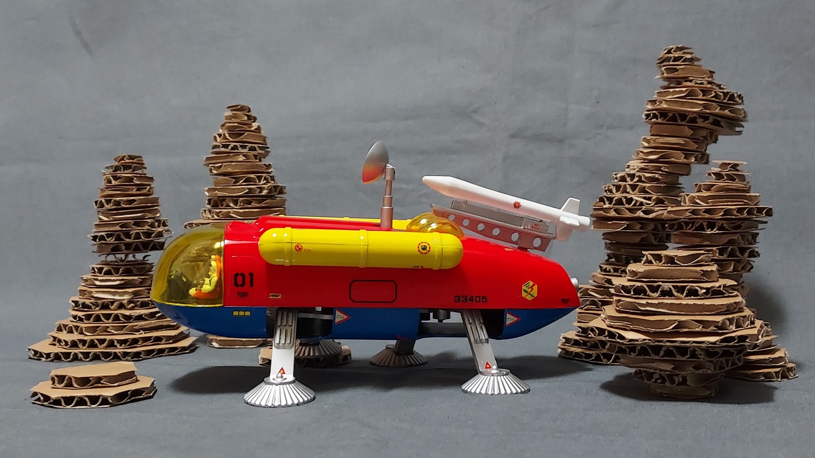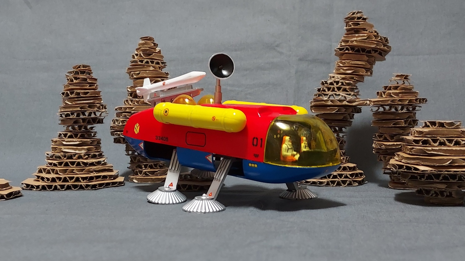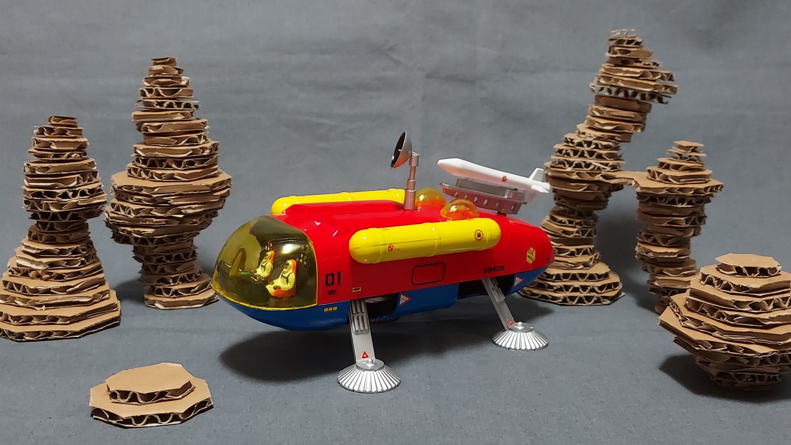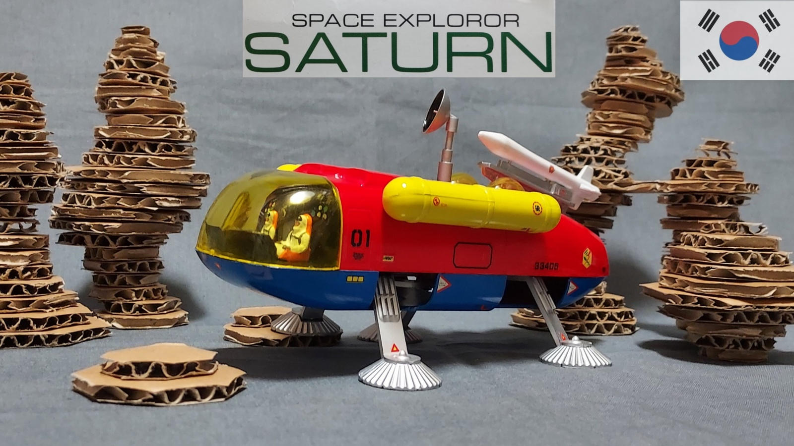 미지의 행성 배경은 골판지로 급조했네요.