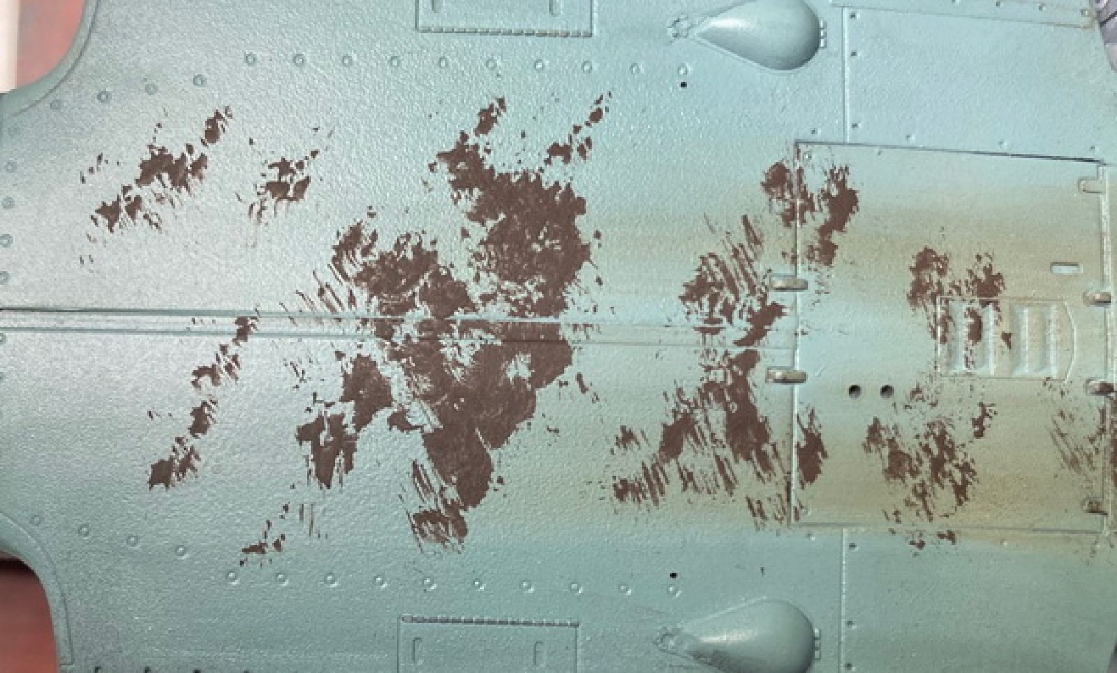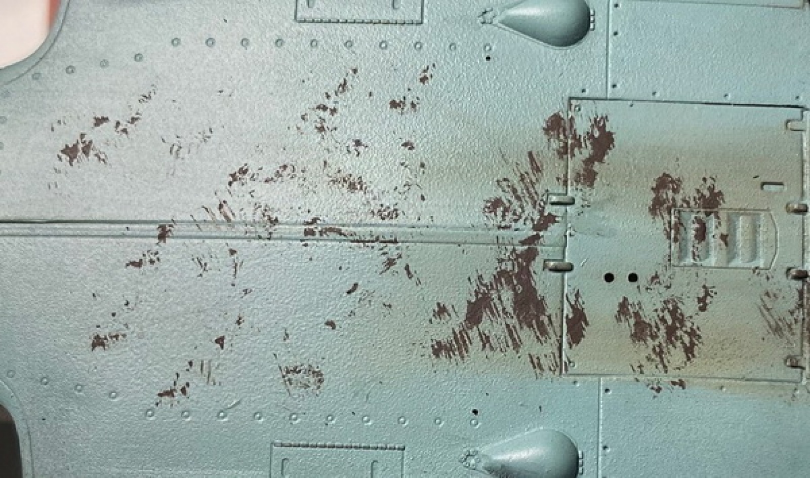 한참 지난후에 왼쪽부분만 물뭍힌 거친붓으로 닦았더니 아래와 같이 되었습니다. 30초정도 작업한 결과입니다.