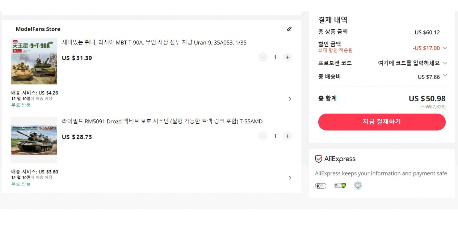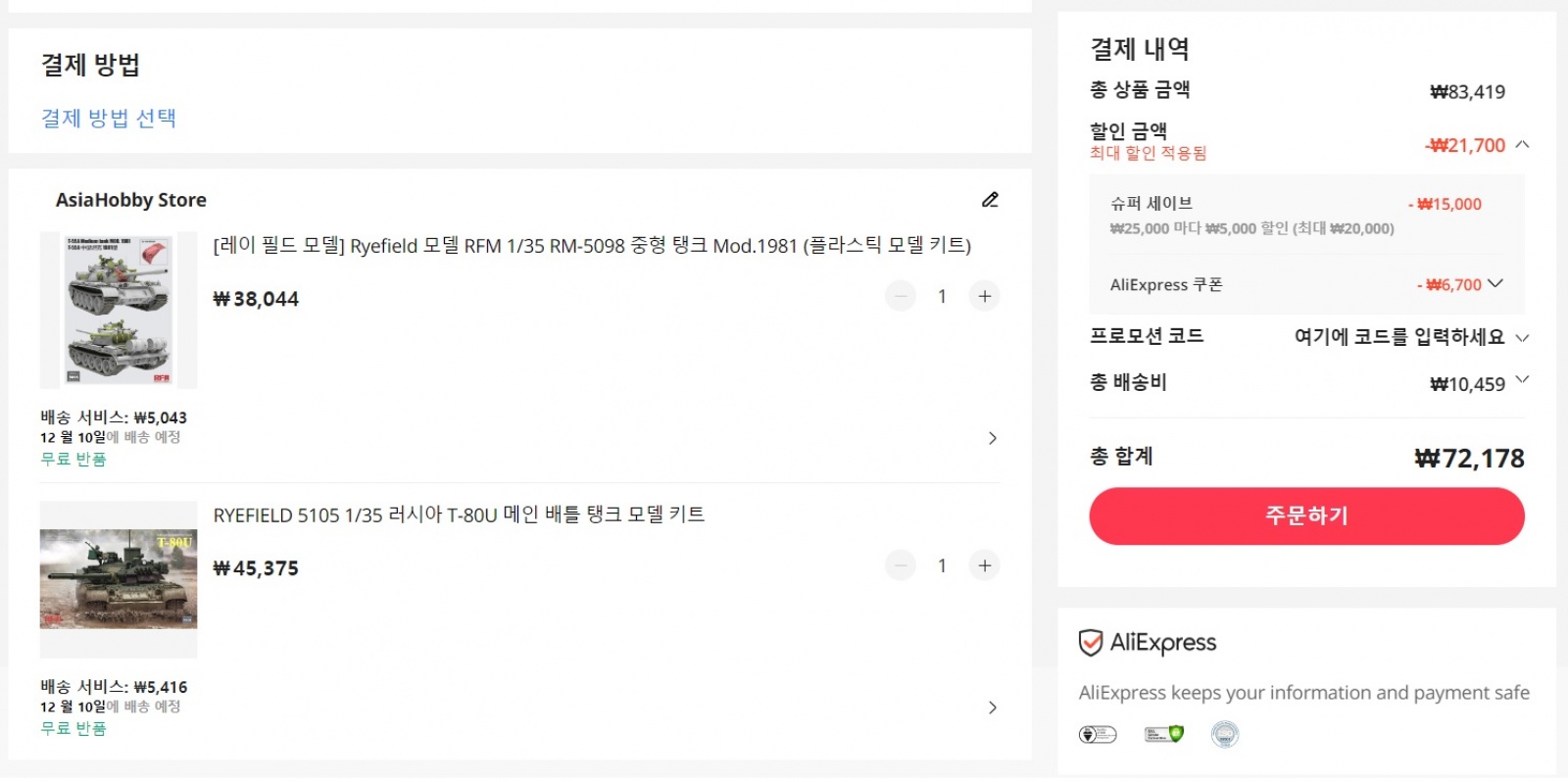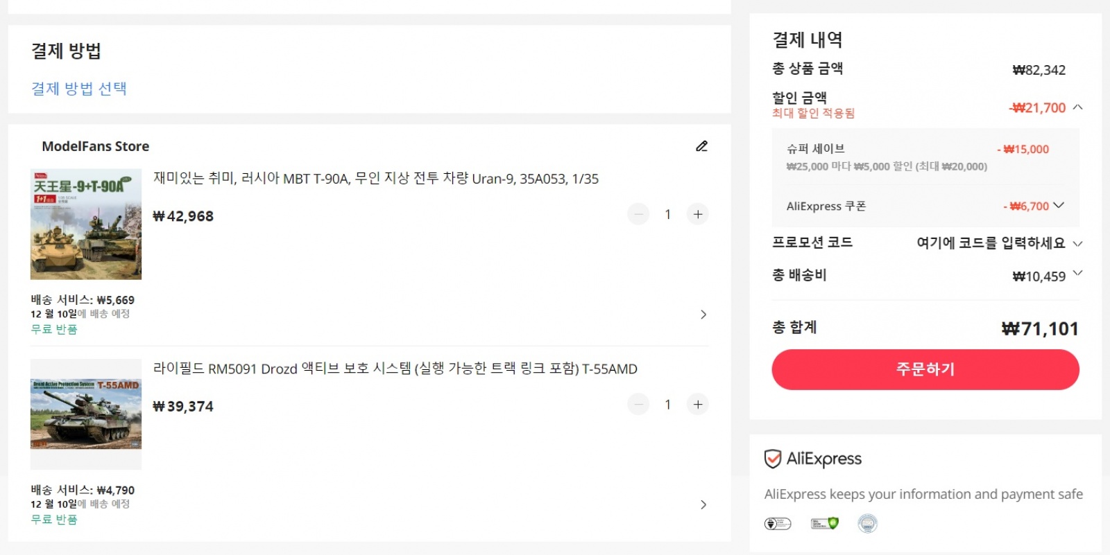 가끔 중제 프라모델을 구입하는 경우 타오바오나 알리를 종종 이용하는 편입니다