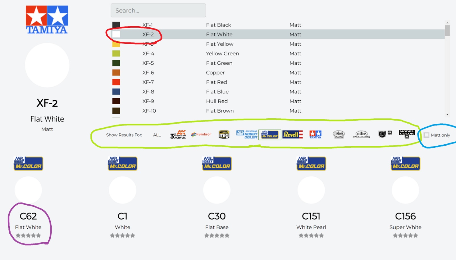 키트에 적혀 있는 회사와 색상을 고르면 아래에 매칭되는 색상을 자동으로 추천해줍니다.